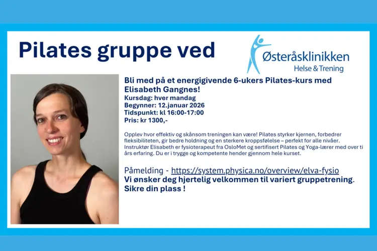 Pilateskurs hos Østeråsklinikken fra mandag 12. januar!