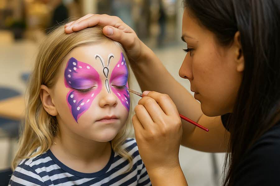 Fra klokken 12.00 til 15.00 kan barna slippe fantasien løs. Våre flinke ansiktsmalere forvandler små ansikter til alt fra superhelter til sommerfugler.